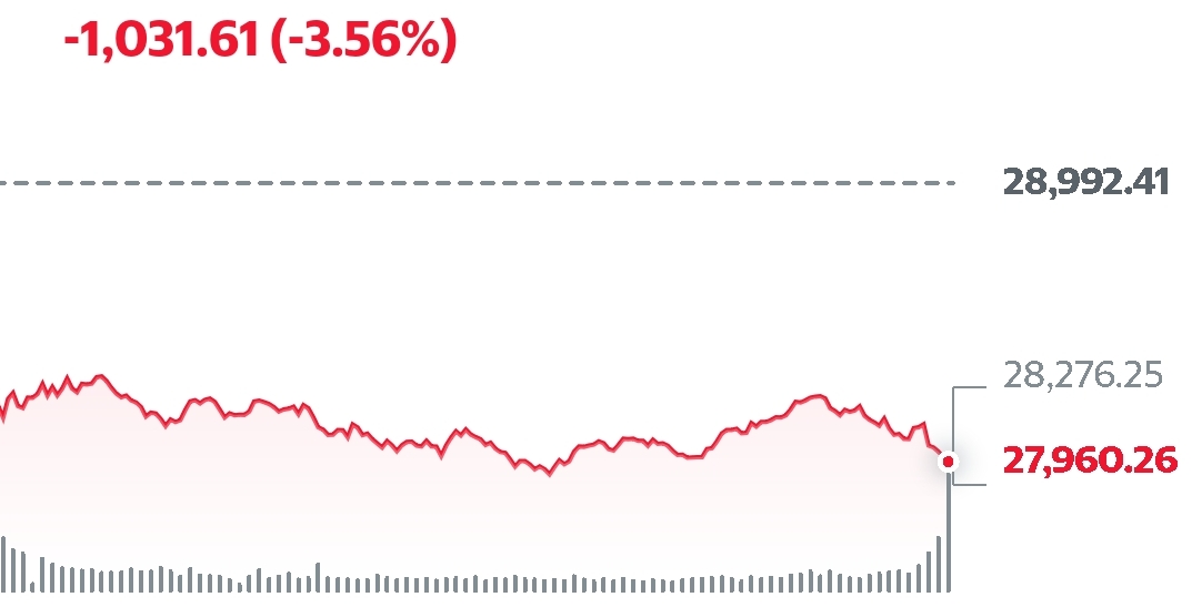 그럼에도 불구하고 1,000포인트 이상 하락한 것은 역사상 세번째이다. 그것은 현재 올해 적자이며 12월 11일 이후 가장 낮은 수치이다.